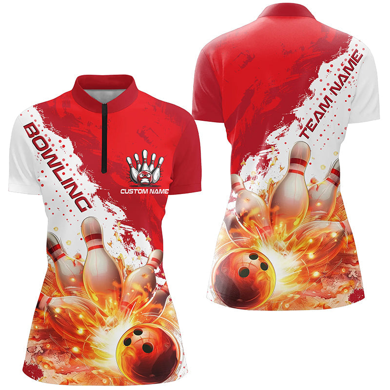 Red Flame Strike Women's Bowling Team Shirts I6254