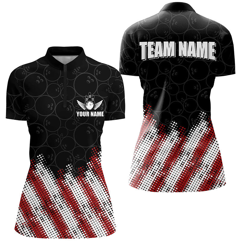 Red, White & Black Camo Bowling Polo, 1/4 Zip for Team League N8161