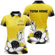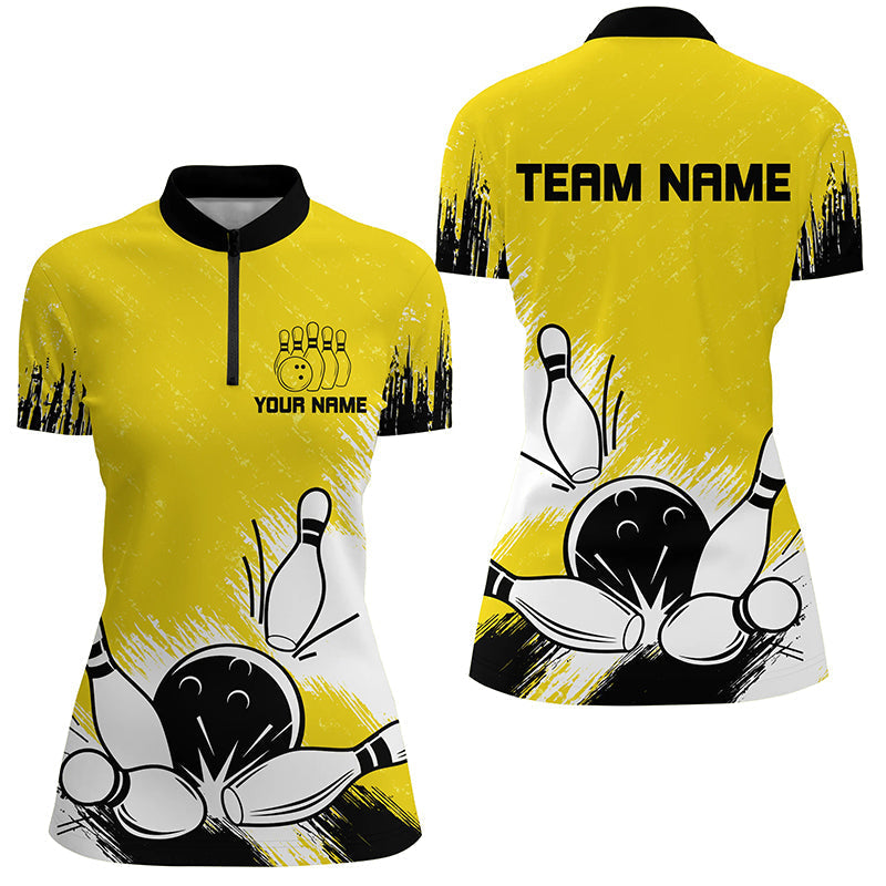Yellow Retro Bowling Polo Shirt, Quarter Zip for Women N7650
