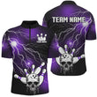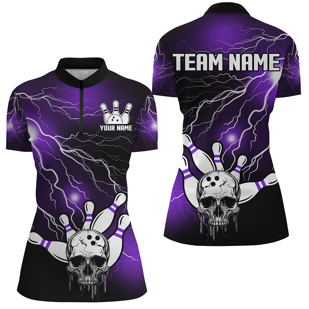 Skull Bowling 1/4 Zip Shirt - Light Thunder Purple - Unisex Halloween Jersey B541