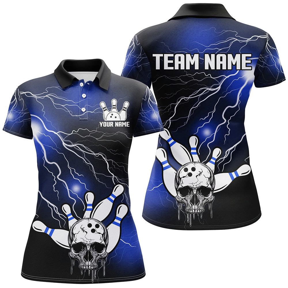 Skull Bowling Polo Shirt - Unisex Light Thunder Blue Halloween Jersey B541