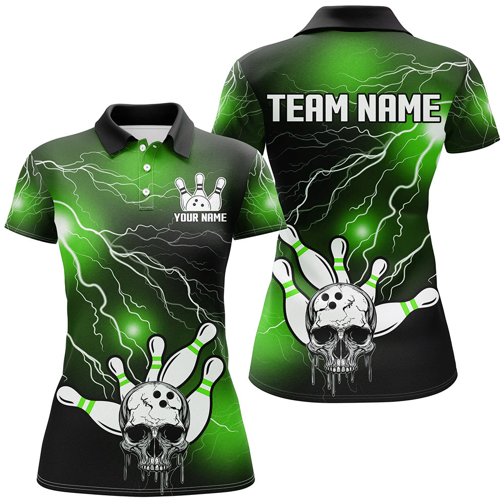 Skull Bowling Polo Shirt for Men & Women - Light Thunder Green Halloween Jersey B541
