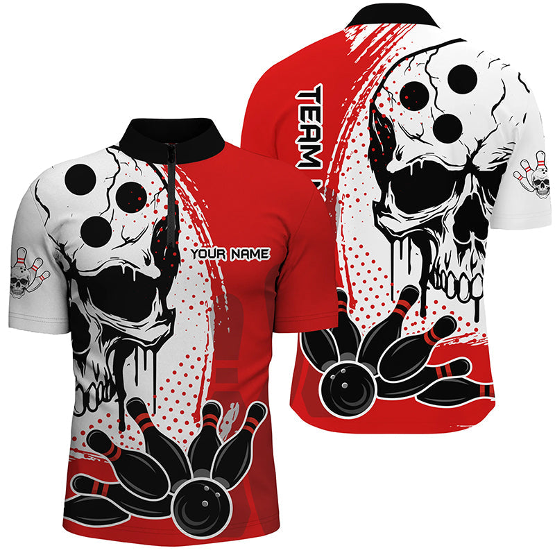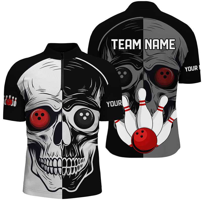 Men's Custom Skull 1/4 Zip Bowling Shirt Q293
