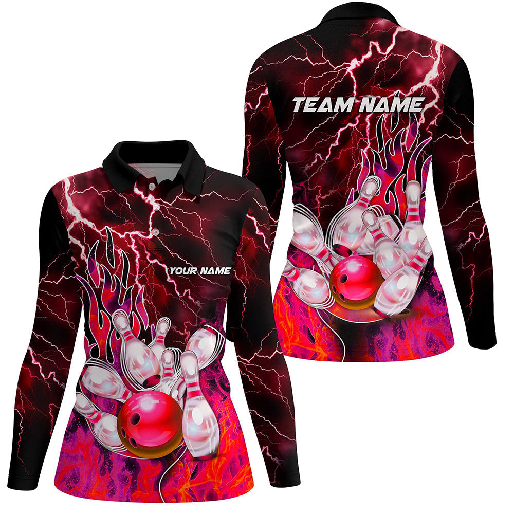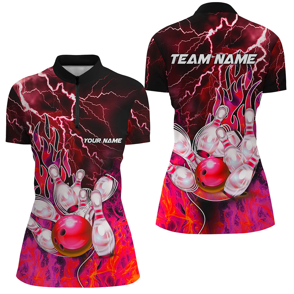 Women's Bowling Polo 1/4 Zip Red Lightning Jersey N8175