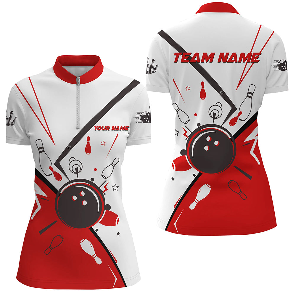 Women's Red Bowling Polo, Quarter Zip Team Jersey N7623