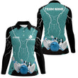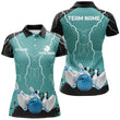 Women's Bowling Polo Shirt - Turquoise Lightning Storm Design N6342