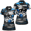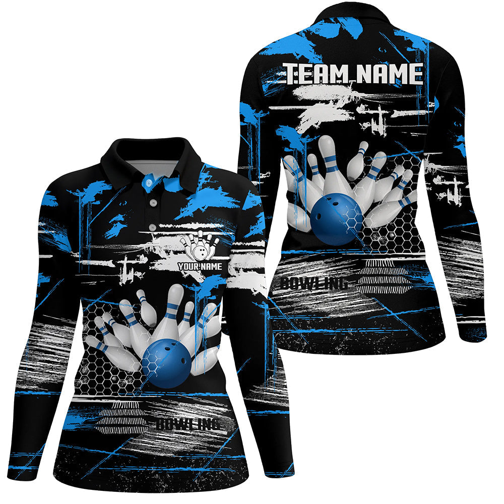Women's Retro Bowling Polo Shirt - Custom Black & Blue Team Jersey N7100