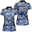 Women's Blue Camo Bowling Polo Shirt - Custom Team Jersey N6361