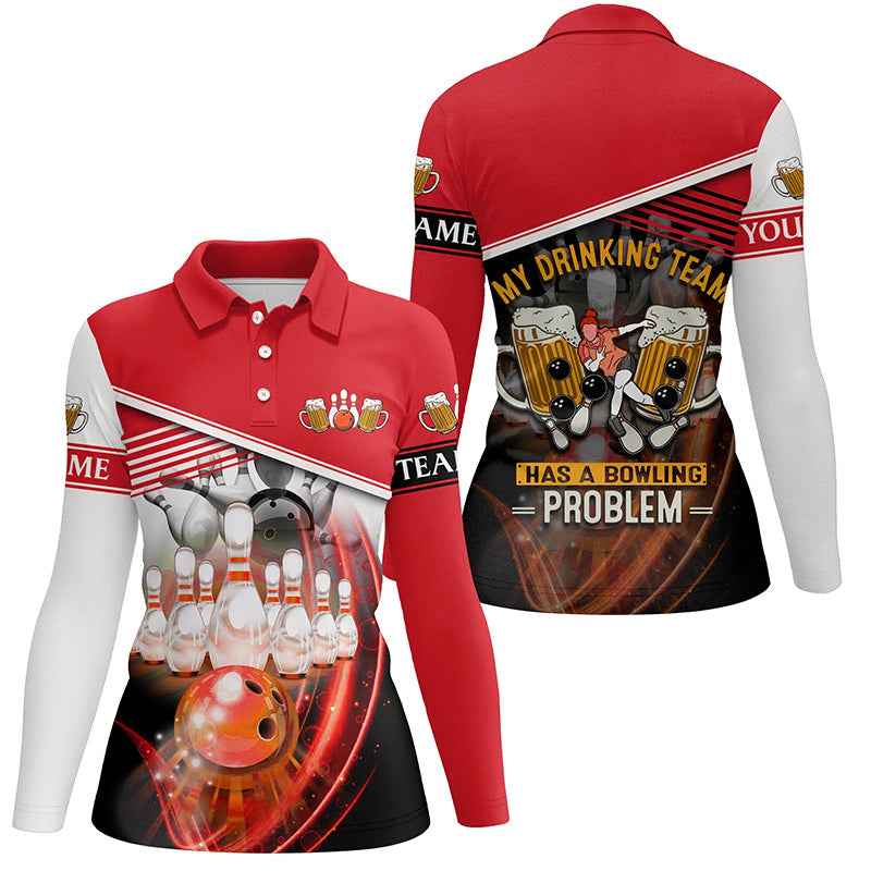 Women's Red Bowling Polo Shirt - Custom Team Jersey N7016