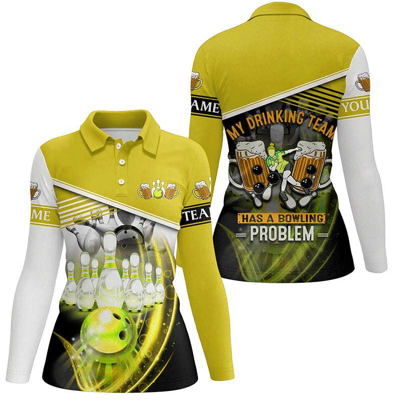 Women's Yellow Bowling Polo Shirt - Custom Team Jersey N7015