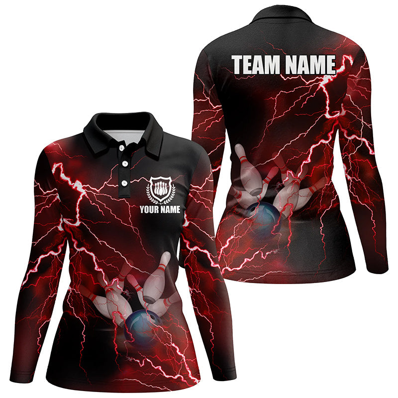 Women's Red Lightning Bowling Polo Shirt - Custom Team Jersey N6145