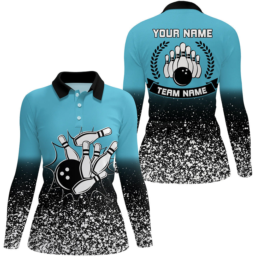 Women's Blue Retro Bowling Polo Shirt N6407
