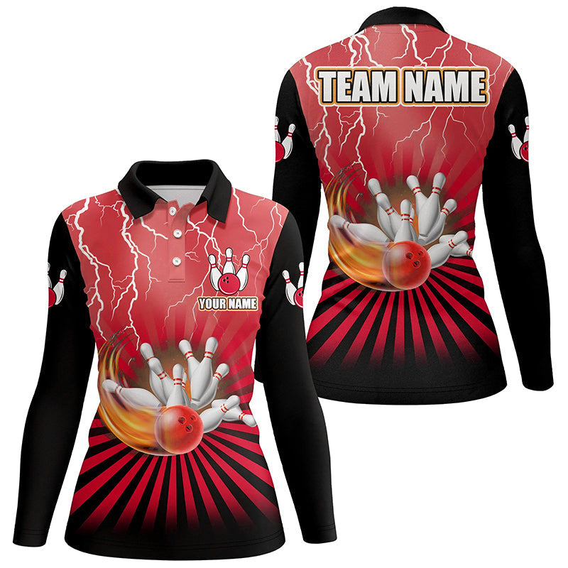Women's Vintage Bowling Team Jersey - Red Lightning Storm N8282
