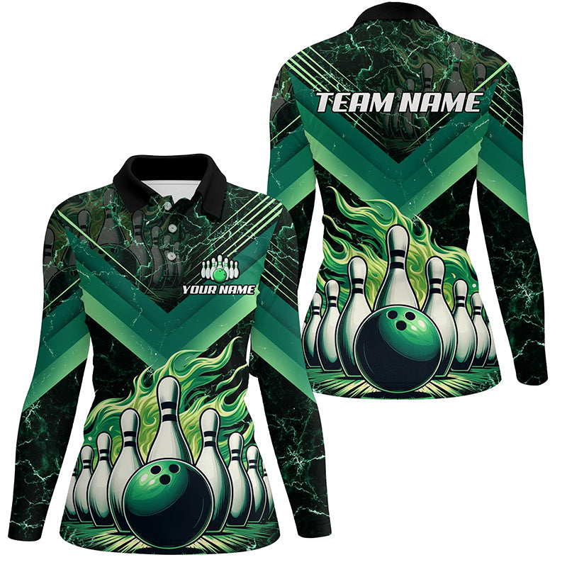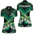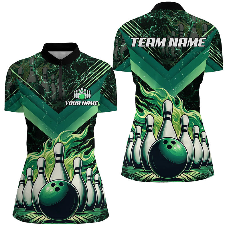 Women's Green Bowling Polo Quarter Zip Team Jersey N7674
