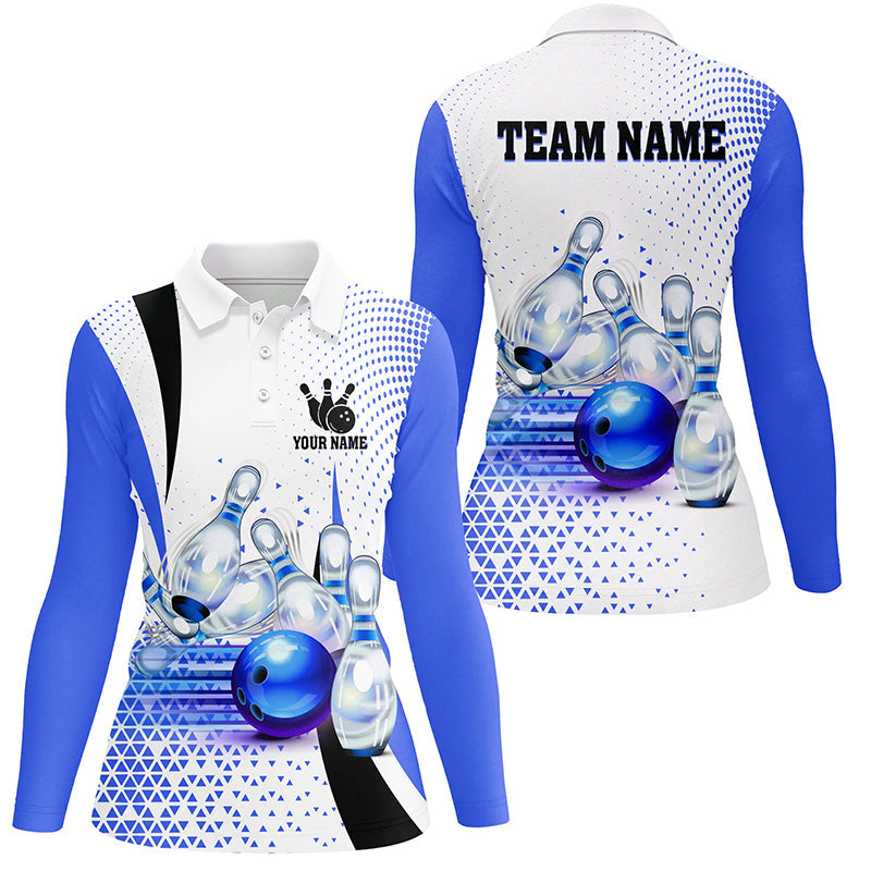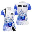 Women's Blue Bowling Polo Shirt - Custom Team Design N7393
