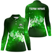 Women's Bowling Polo Shirt - Custom Green Thunder Lightning Team Jersey N7046