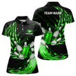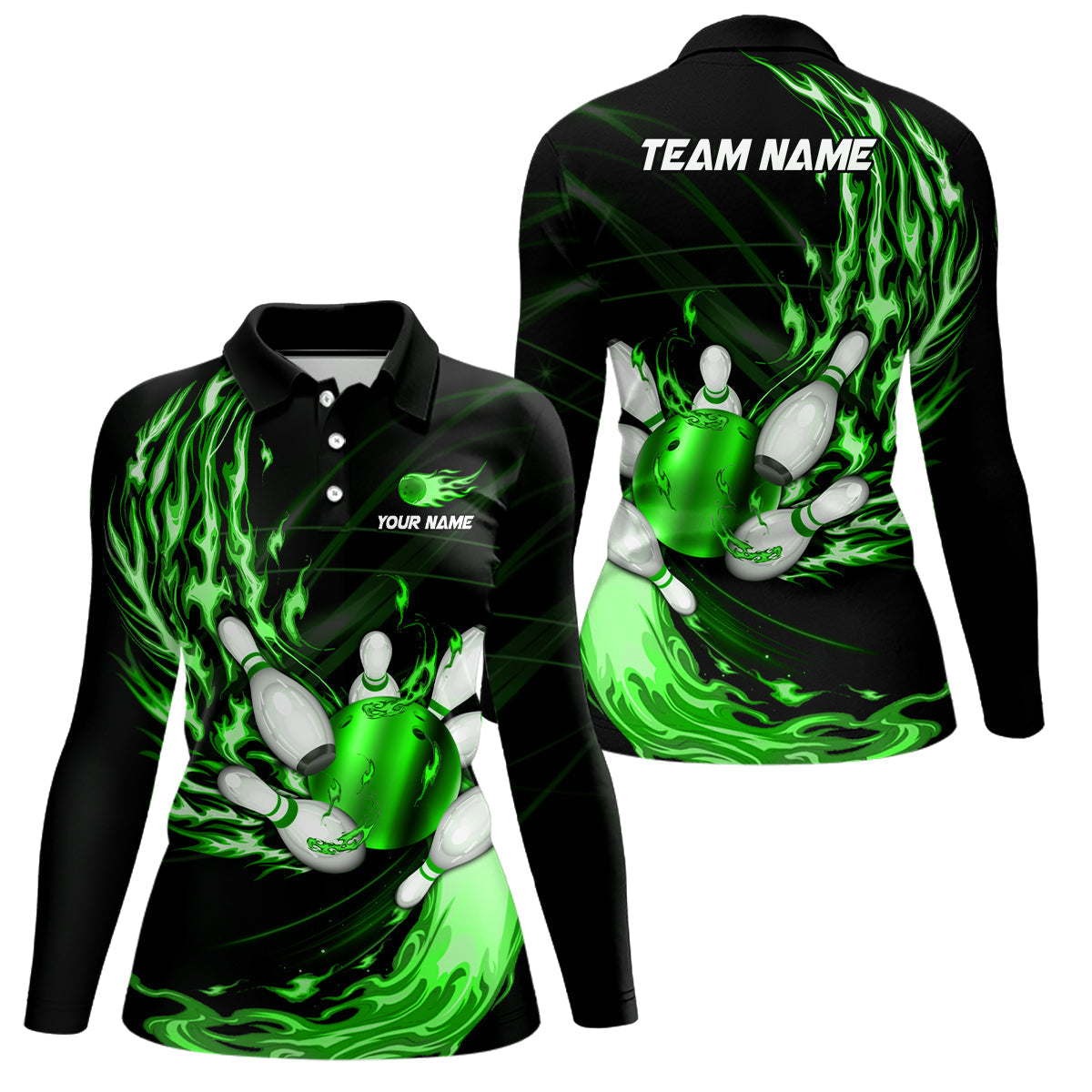 Women's Green Flame Bowling Polo Shirt - Custom Team Jersey N7370