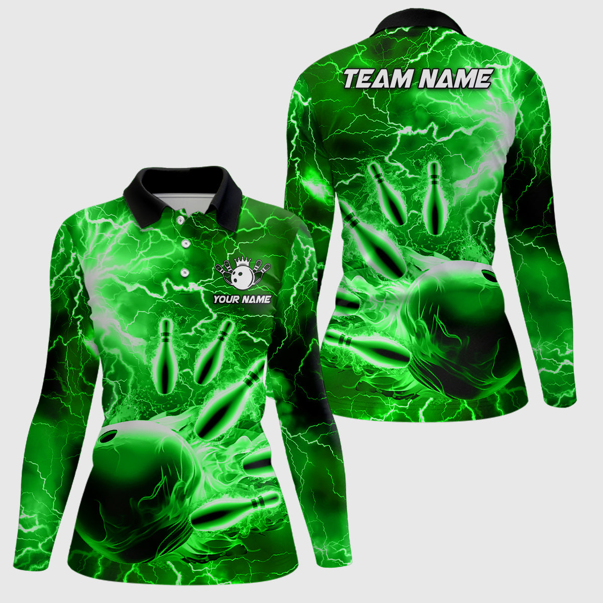 Women's Green Lightning Bowling Polo Shirt - Team Jersey N7143