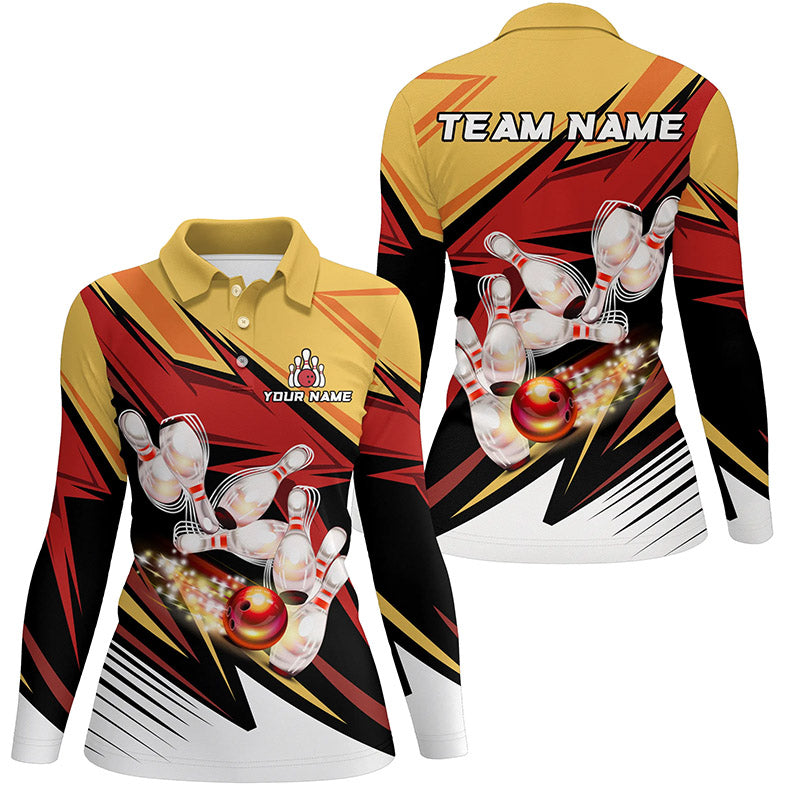 Women's Yellow & Red Camo Bowling Polo, Quarter Zip N7889